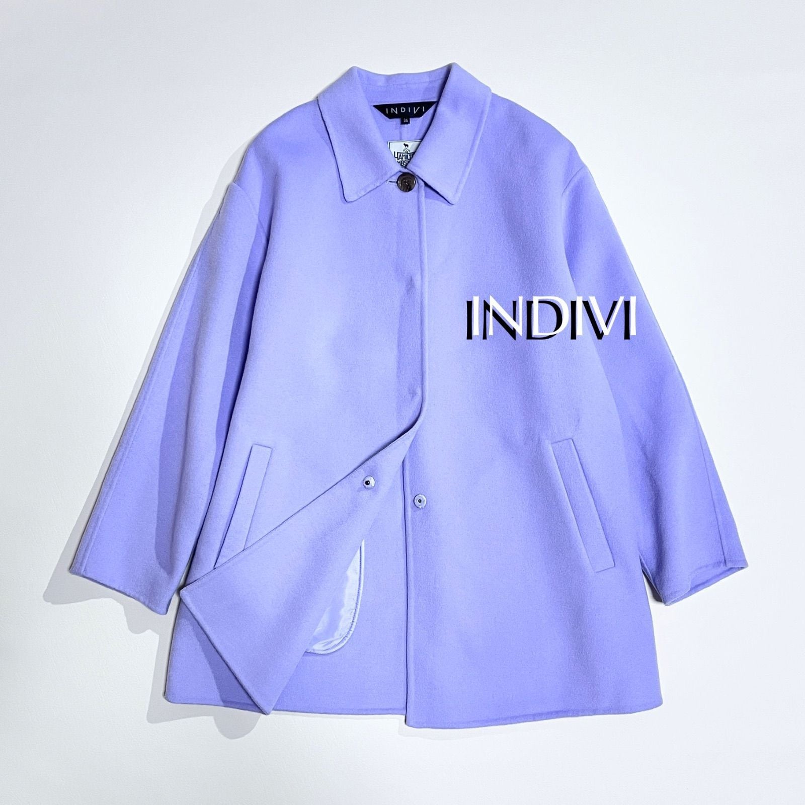cZ24 INDIVI ラムズウール ウール カラーコート ステンカラーリバーコート 2023AW ハミルトン Hamilton リバーコート ミドル丈 ジャケット ウールコート 毛 ラムウール インディヴィ 定価44,000円