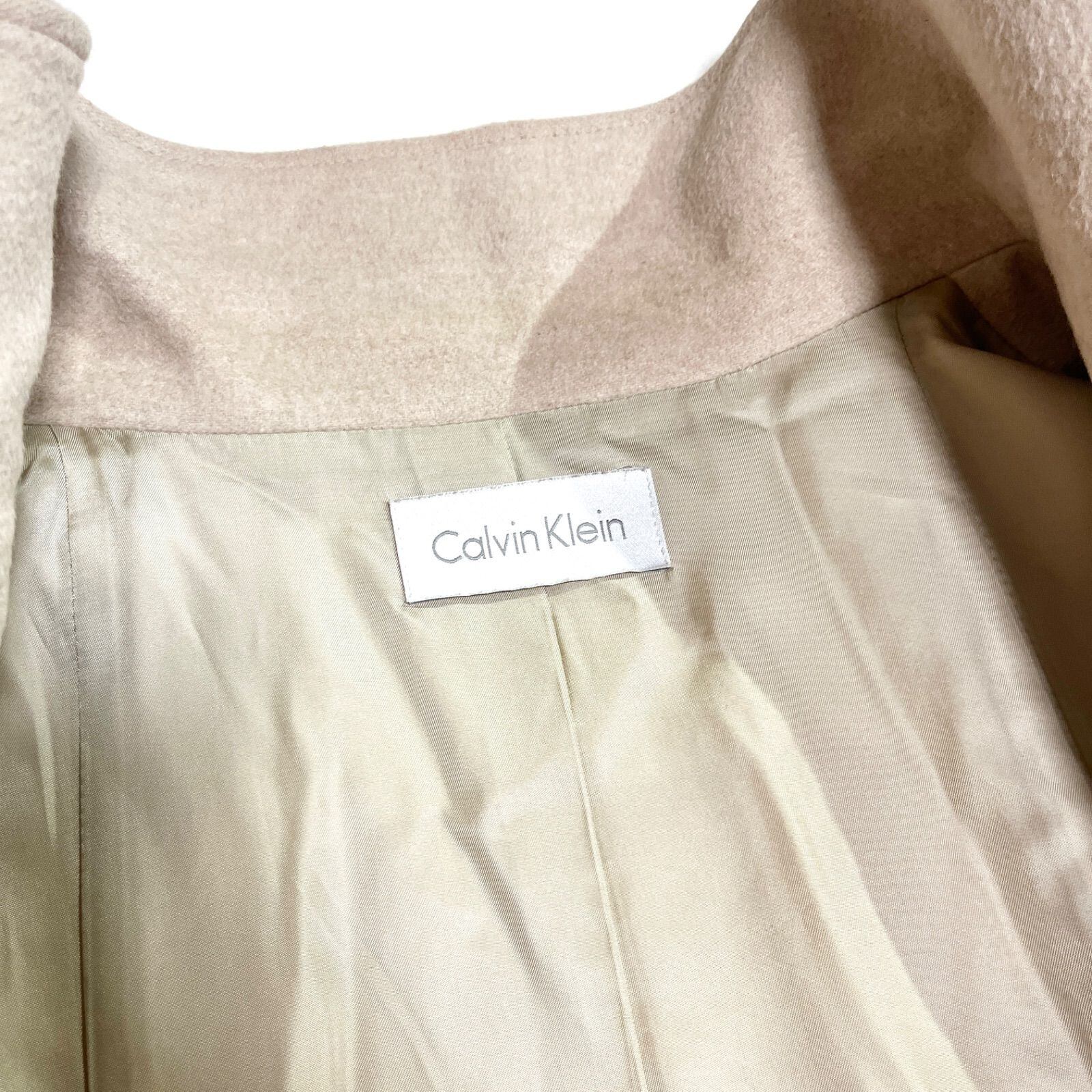 cj36 Calvin Klein カシミヤ 大きいサイズ 2way スタンドカラー ウール コート ベルト 羊毛 ラムウール カルバンクライン