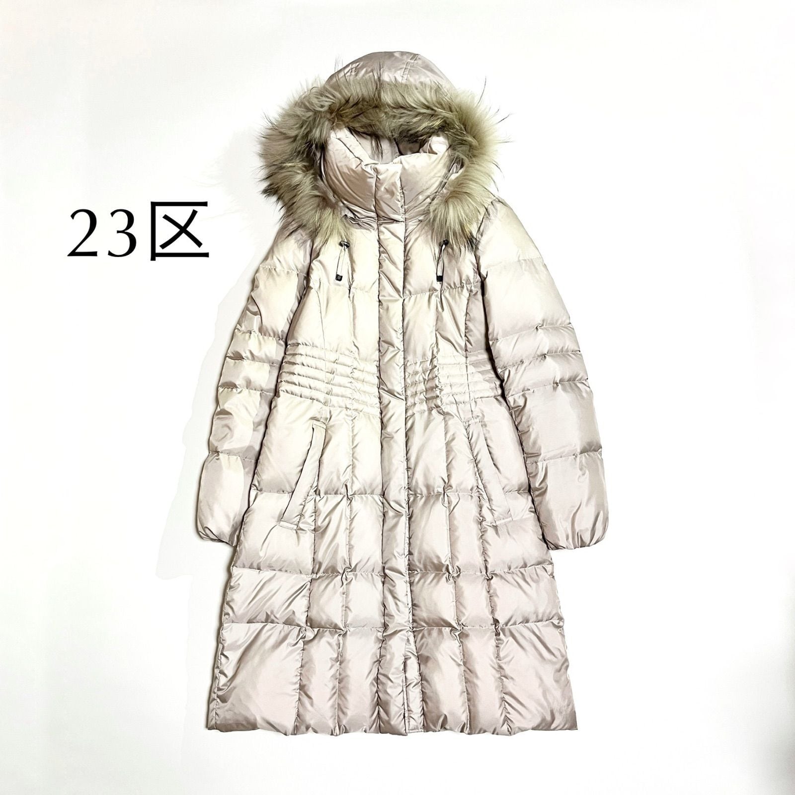 cZ23 23区 3way ファー フーデッド コート ダウンコート ダウンジャケット コート ダウン ジャケット ロングコート チャイニーズラクーン タヌキ 38 ベージュ