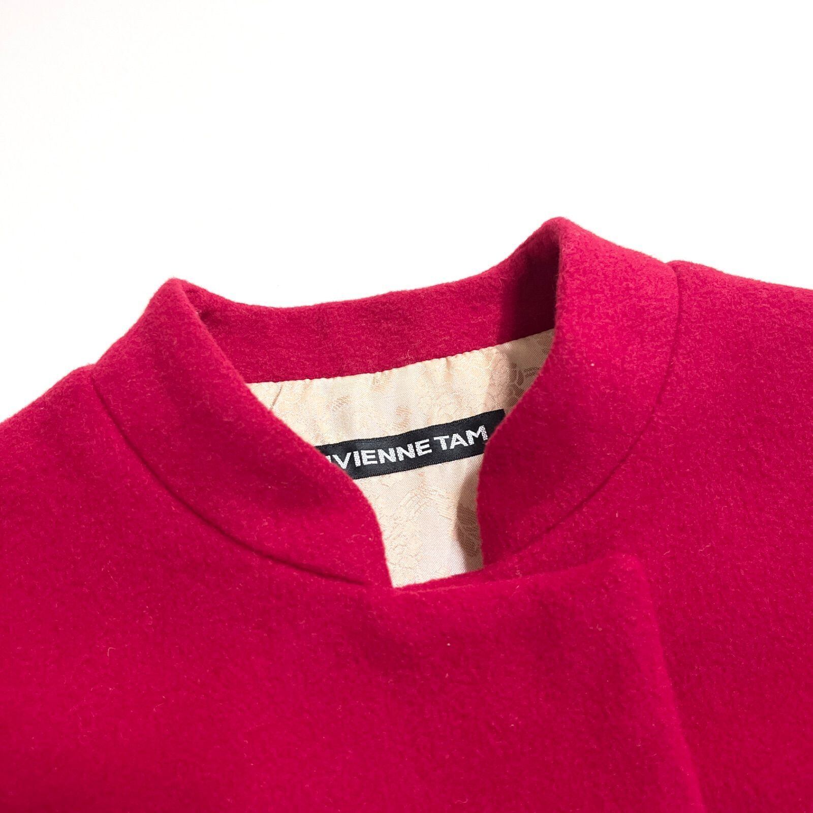 ck93 VIVIENNE TAM 裏地 総柄 花柄 中国 チャイナ マオカラー ウールコート ロングコート 赤 ベルト ビビアンタム ヴィヴィアンタム