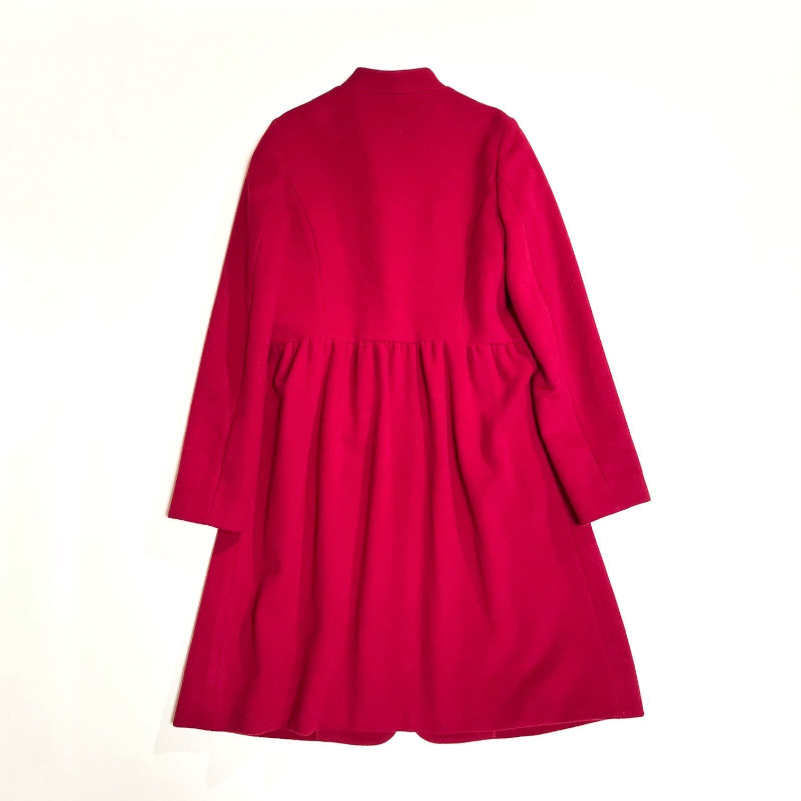 裏地 総柄 花柄 マオカラー ウールコート ロングコート 赤 ビビアンタム ベルト付き 両側ポケットあり