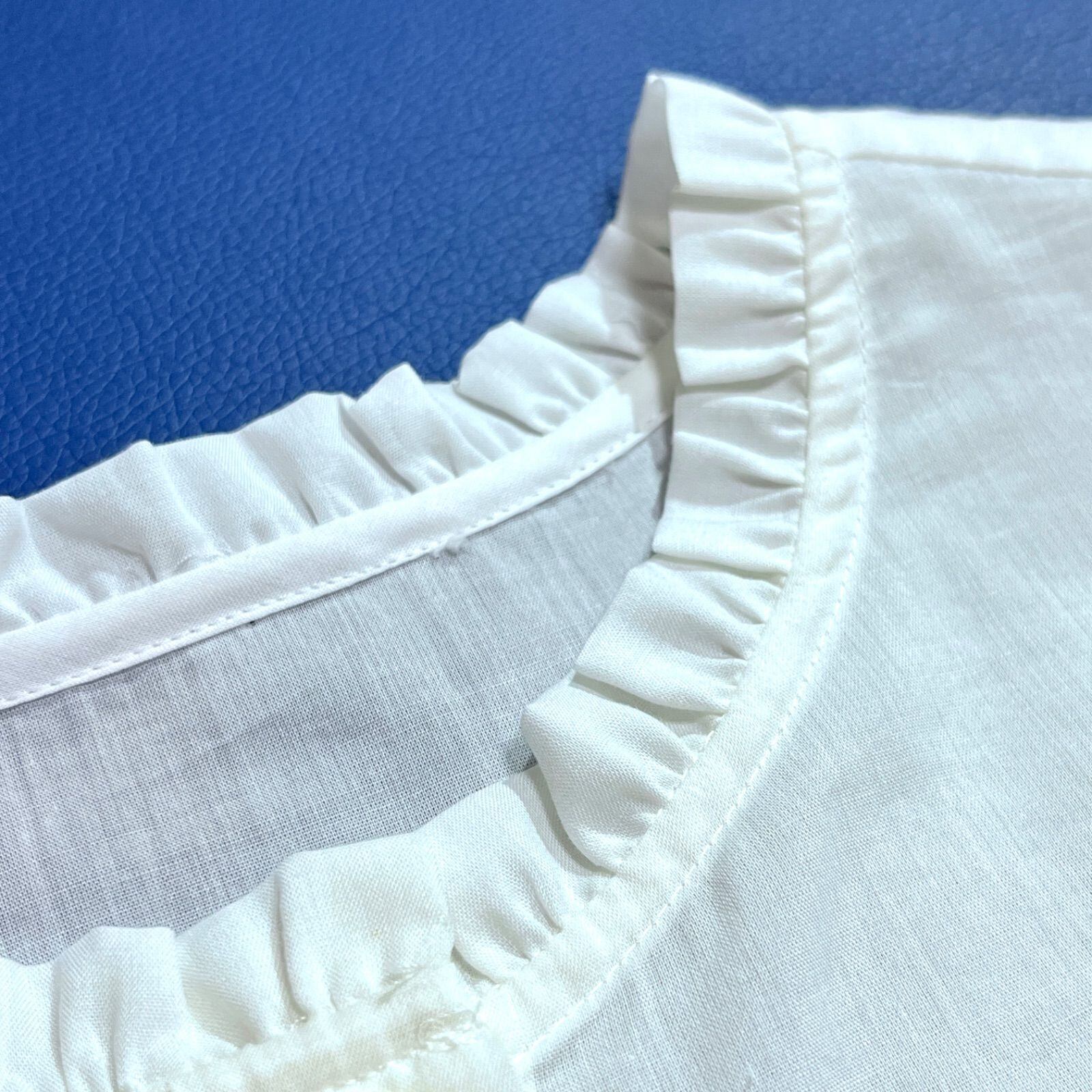 さらに、襟のフリルがカジュアルなデザインを女性らしいやさしい雰囲気に仕上げます。
