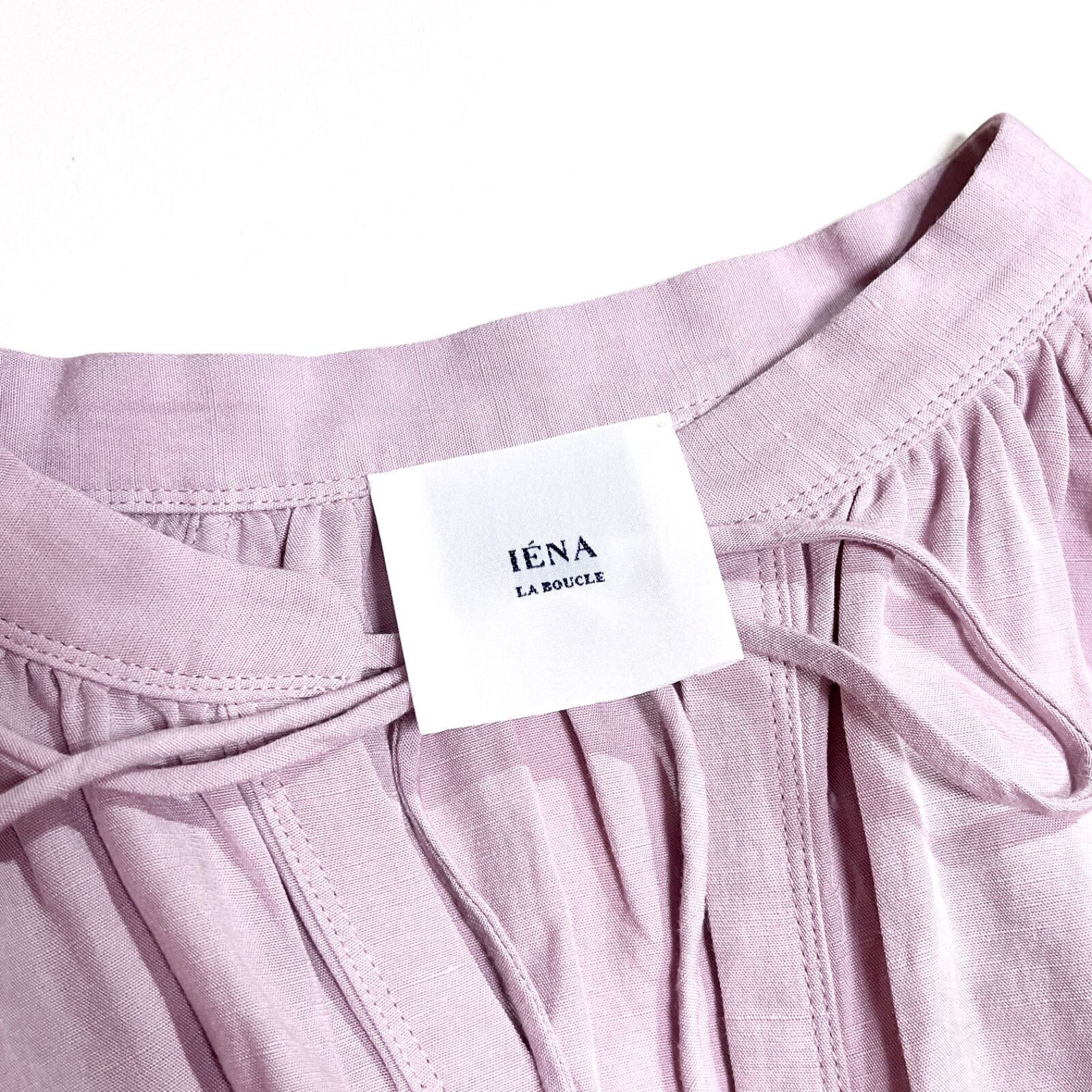 cY66 IENA LA BOUCLE 麻Vネック ラグランシャツ ブラウス ゆったり オーバーシルエット シャツ 大きいサイズ リネン 麻 リボン スキッパー ピンク イエナ イエナラブークル 定価23,100円