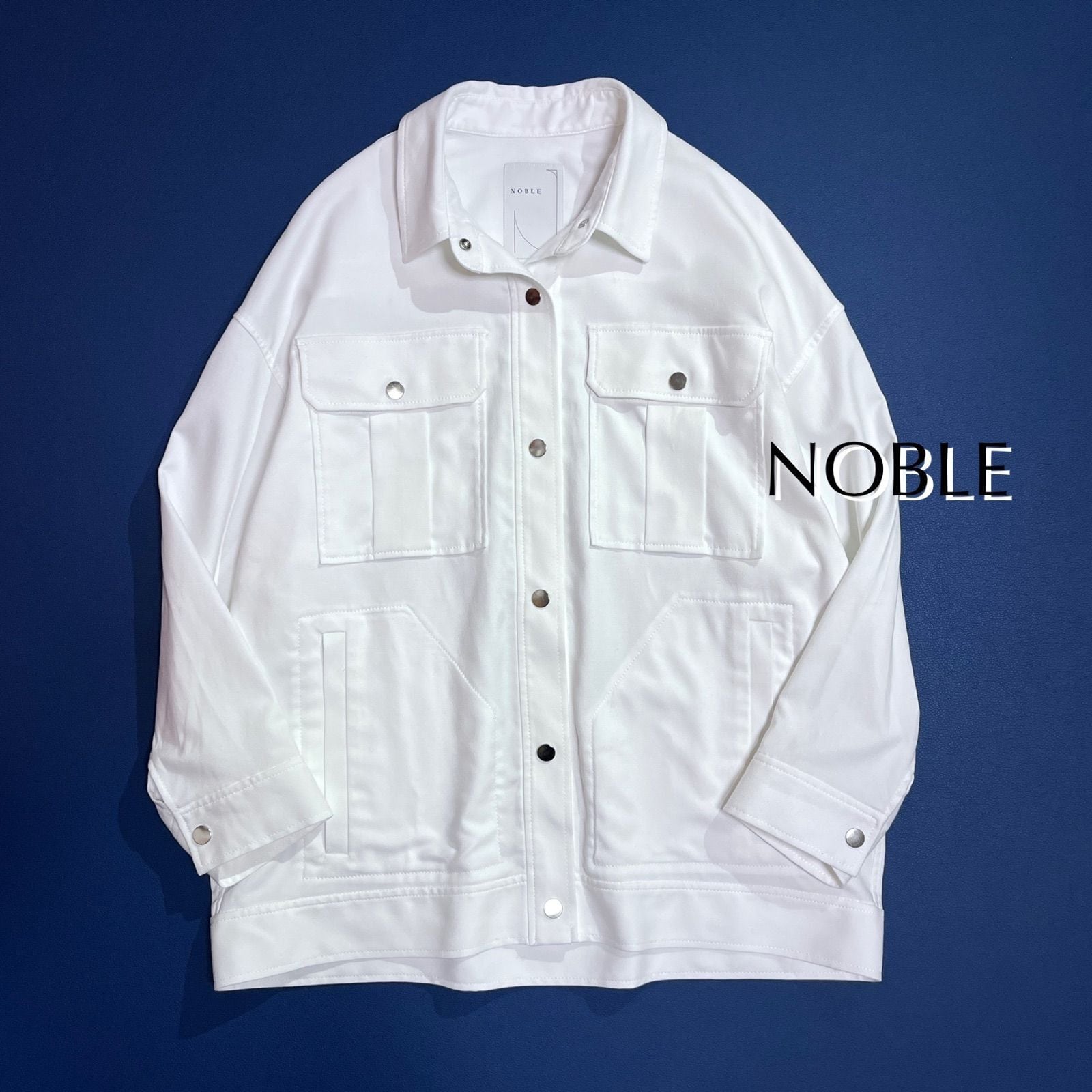 cW26 NOBLE オーバーサイズWポケットブルゾン ホワイトデニム ジャケット 金ボタン ゆったり 春コート ブルゾン ビックサイズ 2020SS 大きいサイズ ノーブル