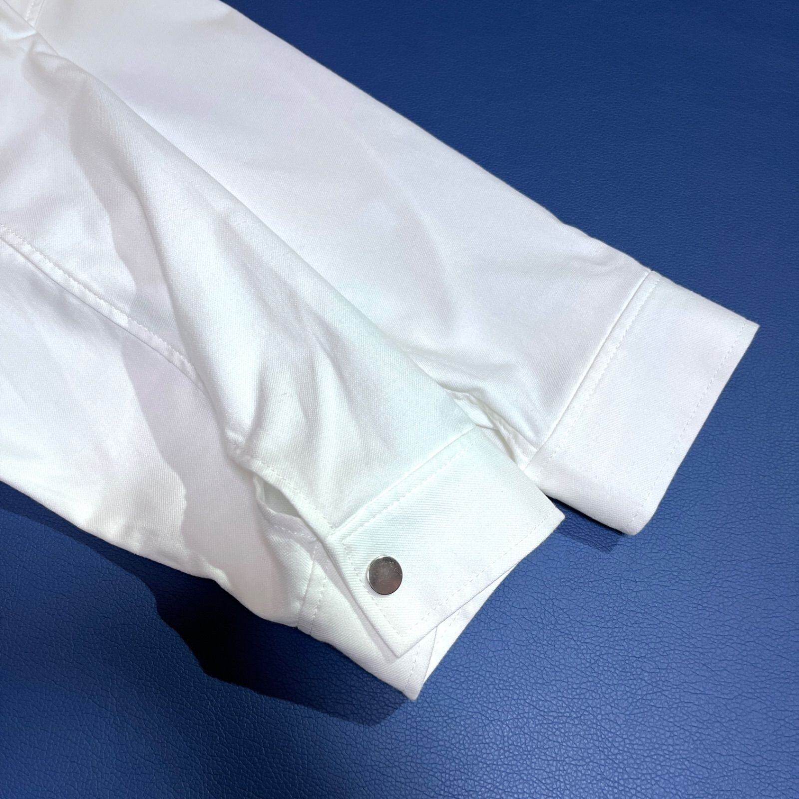 オーバーサイズWポケットブルゾン ホワイトデニム ジャケット 金ボタン ゆったり 春コート 大きいサイズ