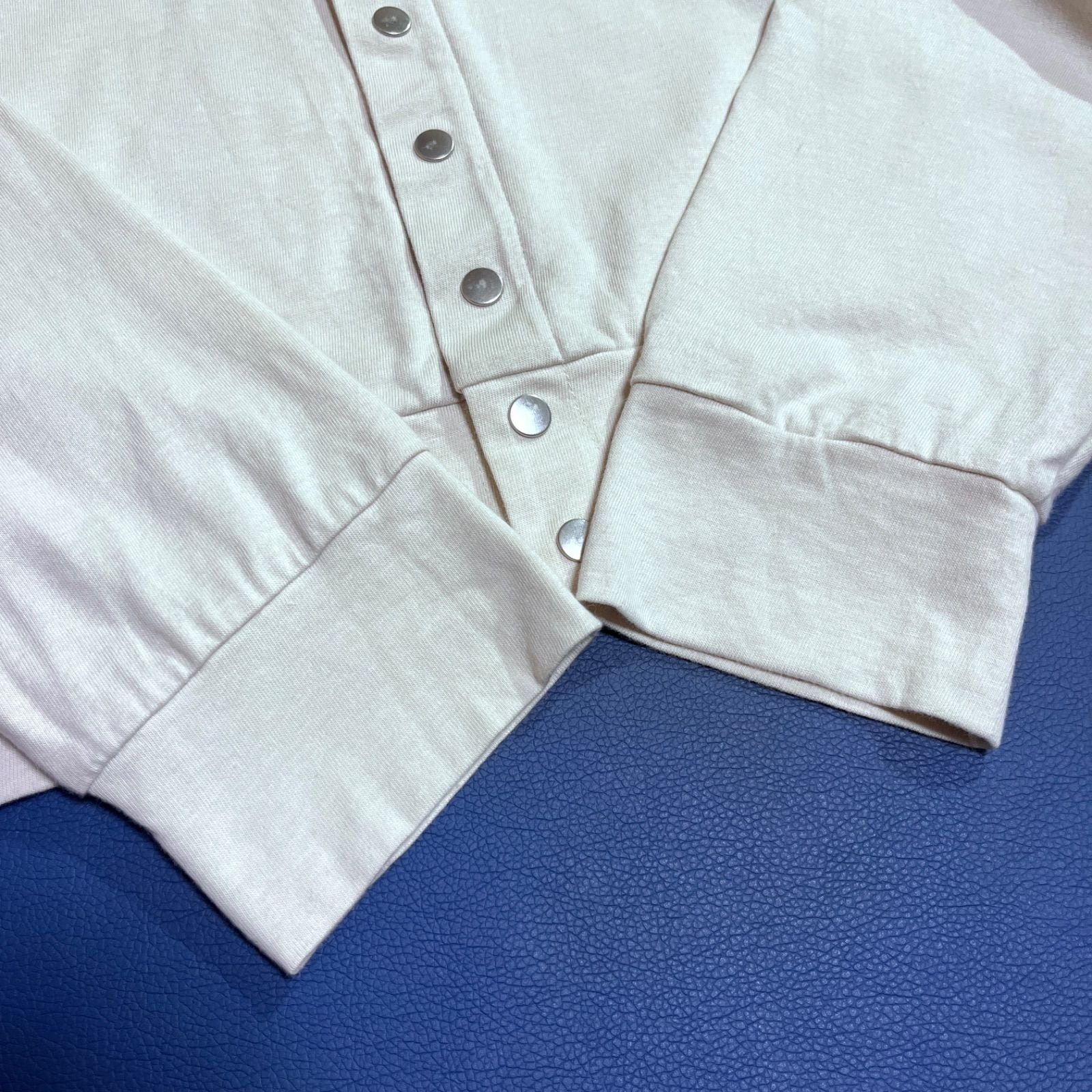 フロントのスナップボタンやさりげないロゴ刺繍が上品なアクセントに。