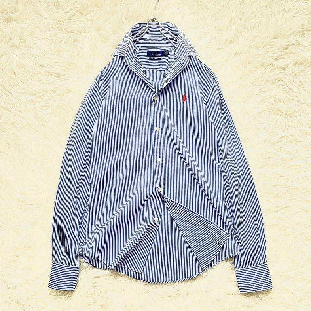 青 ラルフローレン ストライプド シャツ 長袖シャツ 綿 カスタムフィット costum fit