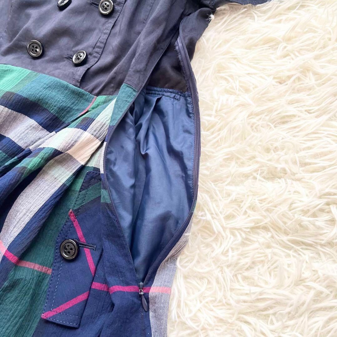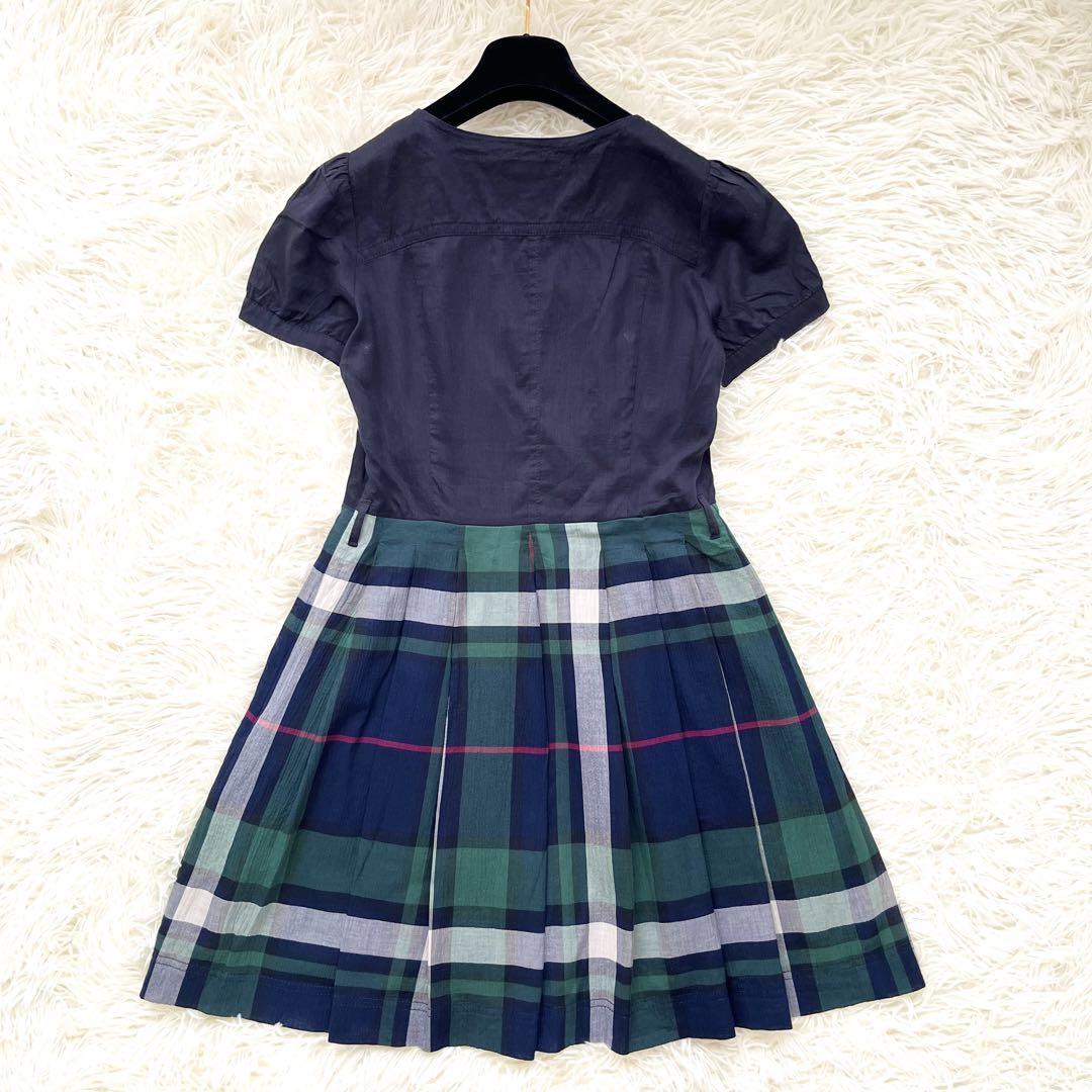 Burberry BLUE LABEL バーバリーブルーレーベル ワンピース ドッキング 半袖 チェック ウエストベルト パフスリーブ