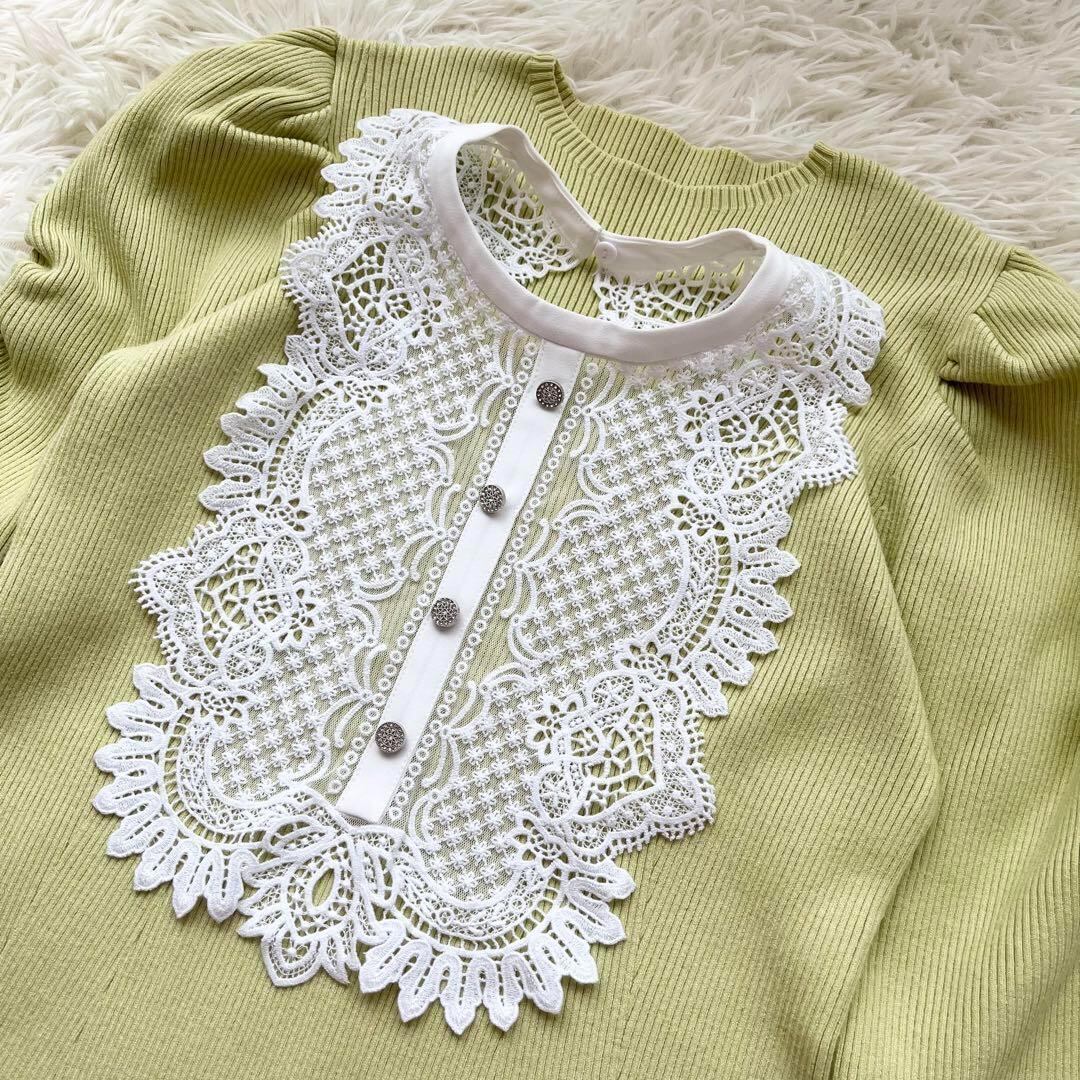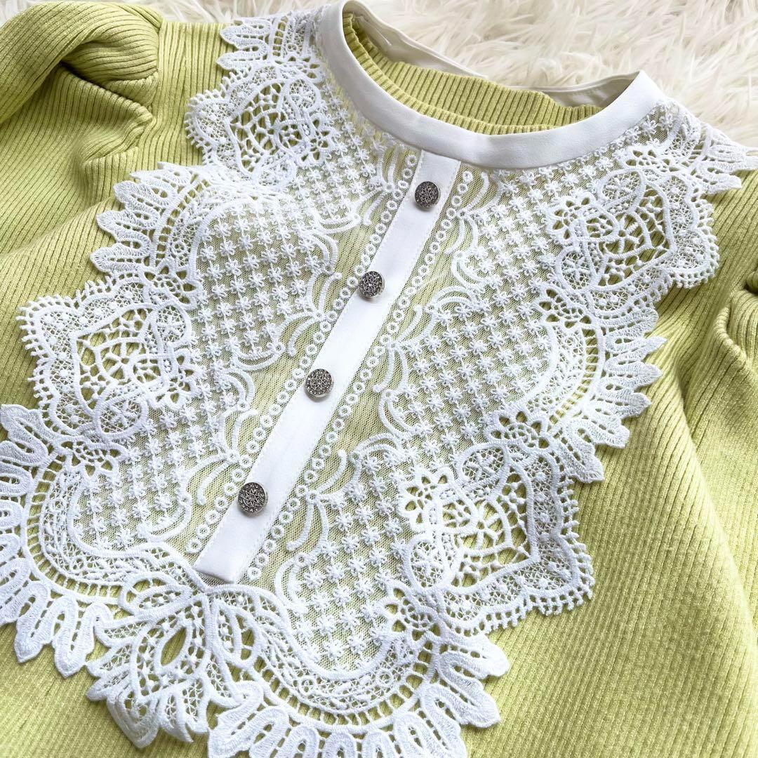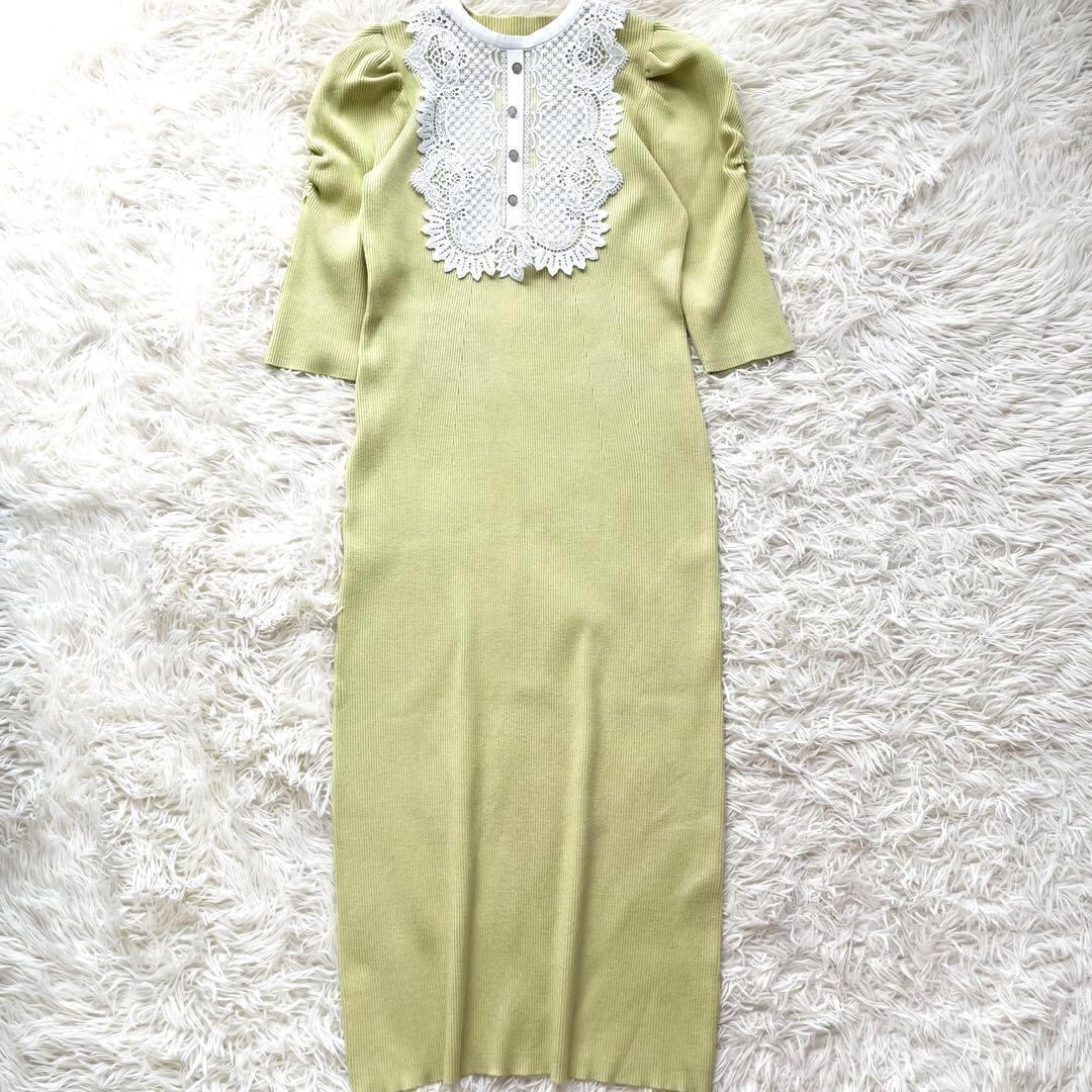 CELFORD セルフォード カシミヤ混 エンブロイダリー レース襟 ヨークニットワンピース ライム