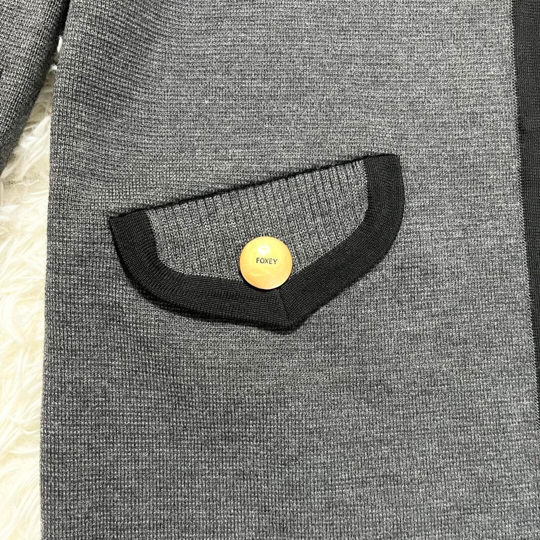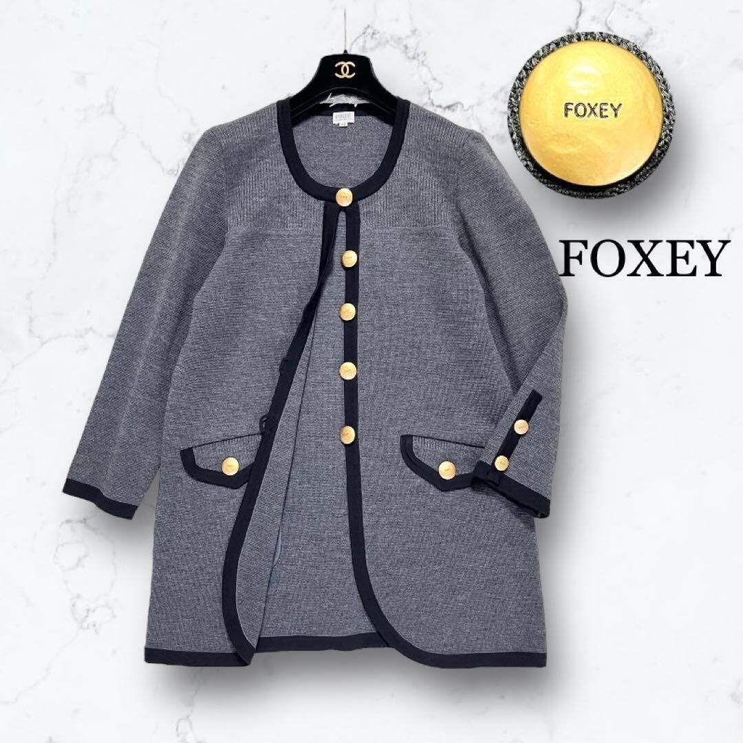 FOXEY 大きいサイズ フォクシー ロングカーディガン コート 金ボタン ロゴ